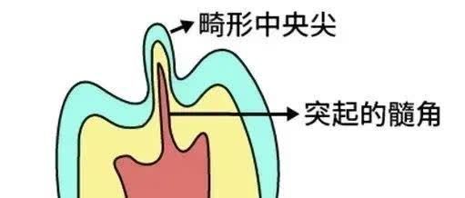 畸形中央尖是牙齿发育过程中出现的一种形态异常,多发生在恒牙的前磨牙(俗称“双尖牙”)上。它通常表现为牙齿咬合面中央一个细小的、圆锥状或圆柱状的突起,高度从几毫米到不足一毫米不等,颜色与牙齿本身相近,不仔细观察很难发现。