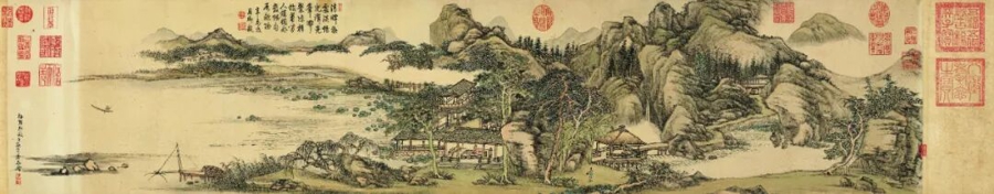 张宗苍的《梧馆新秋》,一片梧叶里藏着整个姑苏的秋天,体现了画家笔下的江南禅境。此作是乾隆皇帝亲自题字的真迹股壹佰,画中的人物亦为其本人。张宗苍65岁时获乾隆皇帝召见并赐诗御题,乾隆对其作品极为喜爱,仅《石渠宝笈》即著录116件作品。